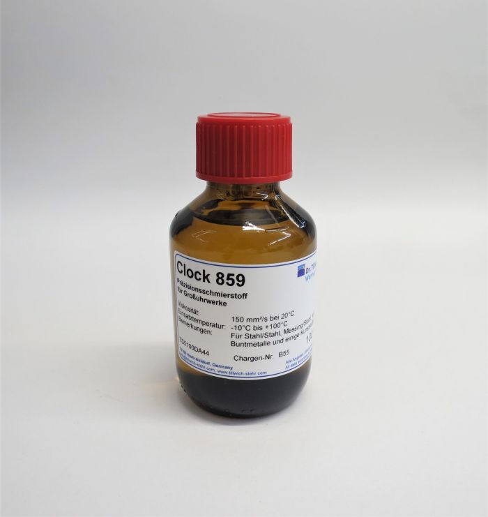 Clock 859 wurde speziell zur Schmierung von Großuhrwerken entwickelt. Für Großuhrwerke, Zähler, Wecker, Schneckengetriebe, Messgeräte, Plotter, Drucker, Messing-Stahl-Lagerungen von 0.1 bis 10 mm Durchmesser.